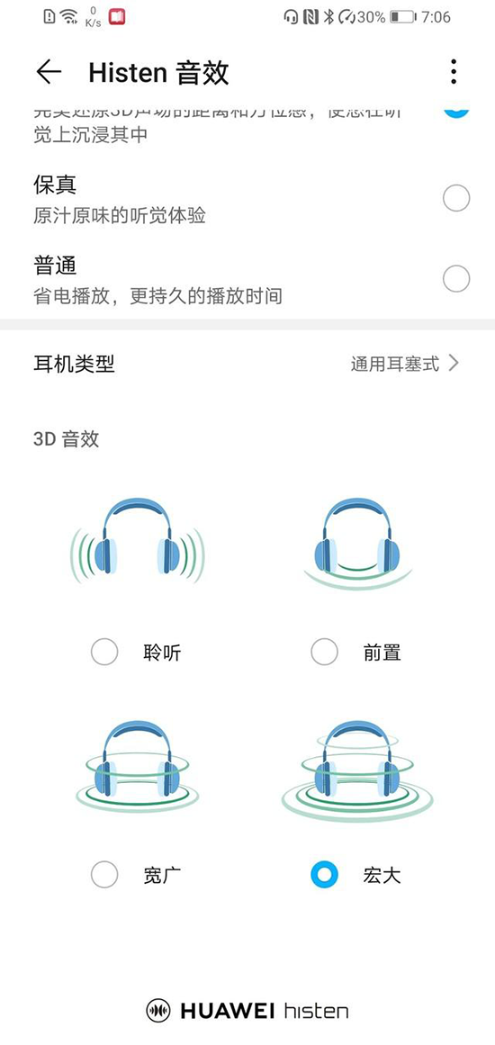 HUAWEI Histen 6.1音效功能也出現(xiàn)在了榮耀X10 Max上,該技術(shù)采用了先進(jìn)的音頻處理算法,可以結(jié)合心理聲學(xué)模型和聽覺感知模型,將各種移動(dòng)設(shè)備的音頻系統(tǒng)的性能做的充分發(fā)揮。該功能在插入耳機(jī)之后便可以開啟,其可以根據(jù)不同的耳機(jī)來進(jìn)行相應(yīng)的音效設(shè)置。