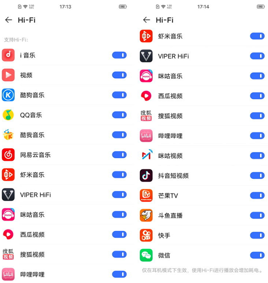 首先或許是為了充分發(fā)揮新HiFi方案的解碼潛力,vivo在新版的i音樂當(dāng)中提供了最高達到32bit位寬的Hi-Res(高解析)在線音頻服務(wù),這甚至超過了很多高端臺機音頻芯片(比如系出同門的CS4398)的解碼能力,由此也不難看出vivo對于自家新旗艦音質(zhì)的信心程度。