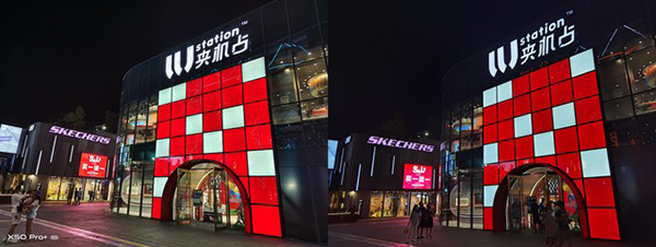 不過在超廣角部分的成像素質(zhì)上,華為P40 Pro+能夠維持更為穩(wěn)定的夜景輸出,在細(xì)節(jié)上要比vivo X50 Pro+的超廣角夜景成像更為豐富一些,后者依舊是在畫面的整體色彩呈現(xiàn)上占優(yōu),夜景符合人的肉眼所見。
