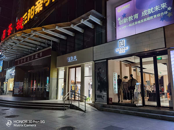 榮耀30 Pro+ 1倍拍攝的北京慧忠路某商夏門前店鋪。