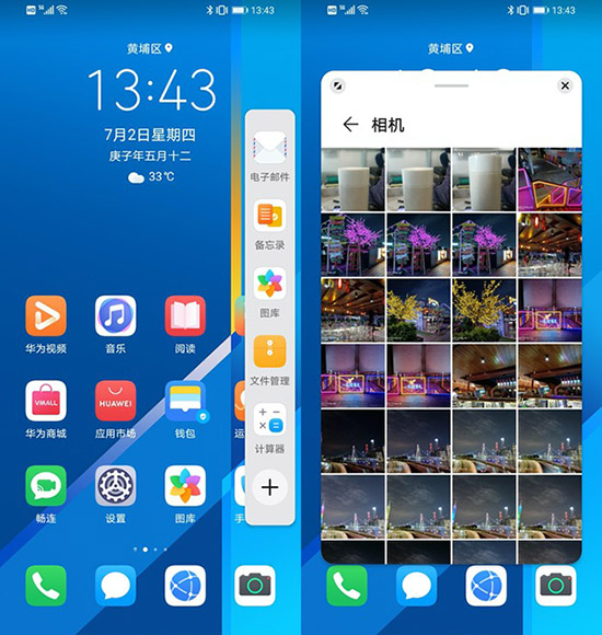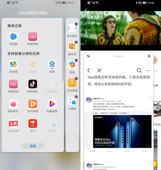 分屏功能支持多款第三方應用,可以在大屏幕上同時看片刷微博。