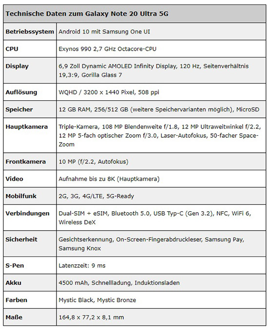 并且,在今日,除三星Galaxy Note20 Ultra官方渲染圖外,外媒 winfuture 還曝光了這款手機的詳細(xì)配置。