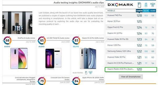 就在今天,Redmi K30 Pro變焦版DxOMark成績公布:120分,排名第十,低于自家的小米CC9 Pro。DXOMARK表示,Redmi K30 Pro變焦版的主攝像頭有著出色的曝光度、色彩和細(xì)節(jié),這是一款很適合拍照的機(jī)型。