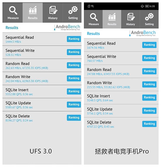 實(shí)測(cè)顯示,即便是面對(duì)當(dāng)下主流旗艦還在使用的UFS 3.0,搭載UFS 3.1的拯救者電競(jìng)手機(jī)Pro仍然領(lǐng)先于前者。實(shí)測(cè)顯示,拯救者電競(jìng)手機(jī)Pro相較于UFS 3.0機(jī)型連續(xù)寫入速度提升有43%之多。