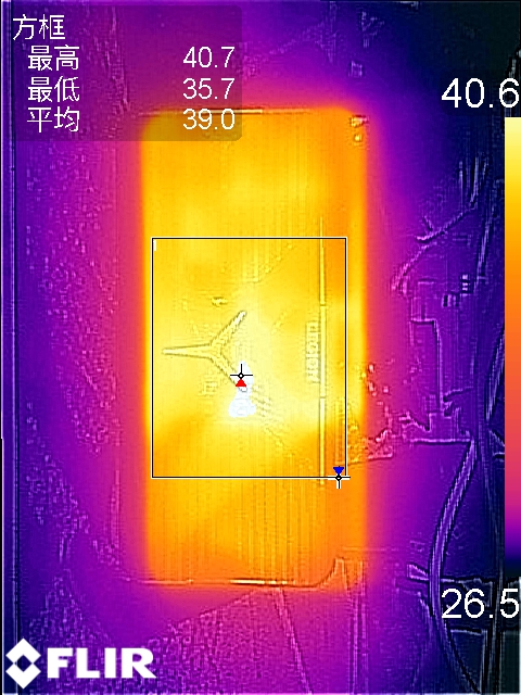 在游戲測試環(huán)節(jié),《和平精英》畫質(zhì)開到最高,兩局下來平均溫度39度,最高溫40.7度,摸上去雖熱但還可以接受。高溫部分也確實集中在中部,手掌兩側(cè)溫度要低上一些。
