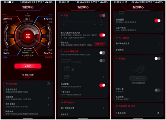 ROG游戲手機3的智控中心可以啟動手機的X模式,X模式擁有三個檔位,LV3性能模式可以全面釋放手機的性能,性能全開也意味著手機的功耗以及溫度會有一定的增加,因此開啟LV3性能模式必須要插入ROG的酷冷風(fēng)扇3方可開啟。
