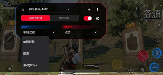 體感操控按鍵則通過抖一抖手機來實現(xiàn)按鍵功能,這個就很好理解了,在使用時抖動一下手機,就可以啟動設置的按鍵功能。例如小編設置的就是抖動一下?lián)Q彈夾。