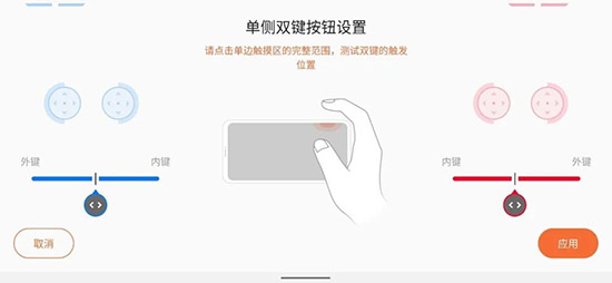 比如這里小編將左側超聲波按鍵的左部設置為下蹲,右部設置為跳躍。為了避免誤觸和適應不同玩家的手指按壓習慣,還可以在AirTriggers的設置中分別設置左右兩個區(qū)域的生效區(qū)域長度,非常人性化。