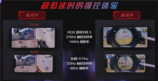 ROG表示,ROG游戲手機(jī)3對(duì)三大游戲、18個(gè)復(fù)雜場(chǎng)景進(jìn)行了專屬優(yōu)化,高刷新率、高觸控采樣率,可以讓玩家在FPS游戲中瞄準(zhǔn)快、開槍快。