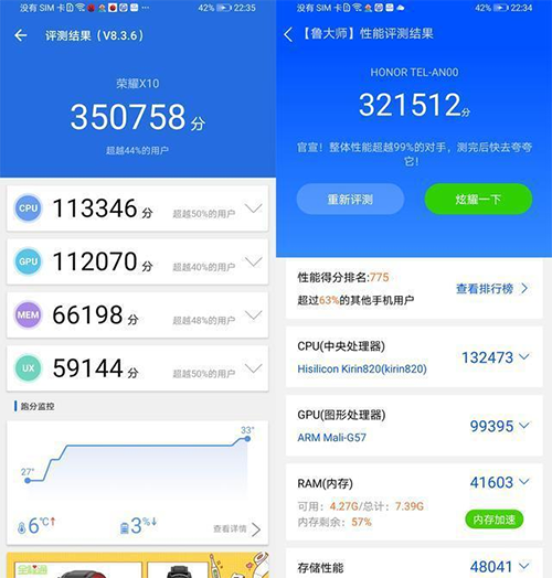 通過安兔兔、魯大師這樣的跑分軟件,都是32萬+的跑分?jǐn)?shù)據(jù),目前中高端手機(jī)才能跑出這樣的評(píng)測(cè)分?jǐn)?shù)。