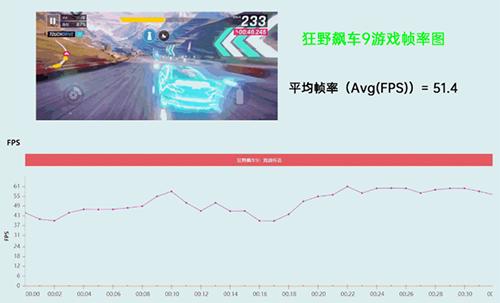 使用PerfDog測(cè)得游戲全程平均幀率為51.4幀,其中FPS>=50[%]占比54.5%,F(xiàn)PS>=60[%]占比6.1%。