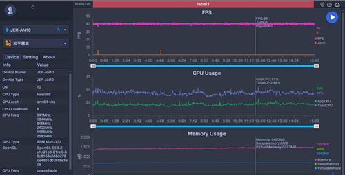 同樣,在《和平精英》游戲中,我們將畫面品質和幀率設置均調(diào)整至游戲目前對手機開放的最高水平,也就是畫面品質HDR高清,幀數(shù)設置超高,實際測試的幀率曲線也是非常平直的,并沒有出現(xiàn)較為明顯的波動,平均幀率40fps,表現(xiàn)基本沒有問題!