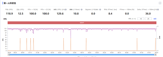 從測試結(jié)果來看,騰訊黑鯊游戲手機3S在《穿越火線:槍戰(zhàn)王者》中的爆破模式開啟極高畫質(zhì)與極高幀率的前提下,能夠?qū)崿F(xiàn)120FPS的最高幀數(shù)。而除了爆破模式內(nèi)每小局結(jié)束時可能會出現(xiàn)幀率明顯下跌的情況之外,其幀率穩(wěn)定性相對不錯,在8分20秒的游戲全程內(nèi)能夠達到118.9的平均幀率。此外在游戲全程中CPU溫度也相對穩(wěn)定,平均溫度為53.6℃。