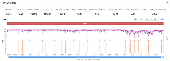 而在同樣的設(shè)置之下,該機在《穿越火線:槍戰(zhàn)王者》在最終12小時模式可達到最高60FPS幀率,這也是目前該模式下的最高幀率。此時該機在25分57秒的時間內(nèi)達到了58.7的平均幀數(shù),只不過由于該模式對性能要求更高,因此幀數(shù)穩(wěn)定性相對有所下降,且CPU平均溫度也達到了更高的59.5℃。
