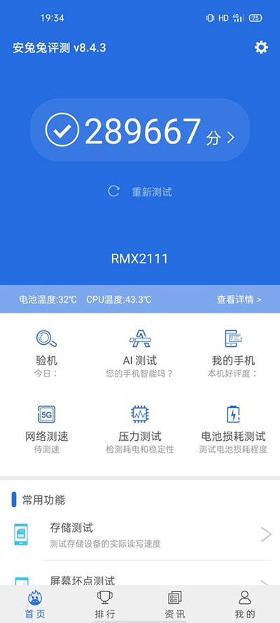 為了讓大家更直觀的理解真我V5的性能,我們不妨先用比較通用的安兔兔跑分來(lái)測(cè)一下它能跑多少分。