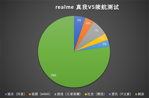 得益于5000mAh大電池與天璣 720 先進(jìn)的制程工藝,realme真我V5在兩個(gè)半小時(shí)的連續(xù)續(xù)航測(cè)試后剩余 78% 的電量,算是十分優(yōu)秀的水平。