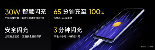尤其是這個(gè)30W閃充作為真我V5的主要賣點(diǎn),除了日常使用,其實(shí)也可以成為游戲愛好者的必備,更快的充電速度讓你即使邊玩邊充也能快速回血。而疾速閃充作為realme的優(yōu)秀基因,真我V5也表現(xiàn)出了強(qiáng)大的競(jìng)爭(zhēng)力,65分鐘內(nèi)就可將5000mAh大電池的手機(jī)充電100%,這對(duì)于一款配備超大電池的手機(jī)來(lái)說是如虎添翼的。