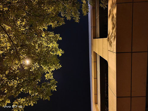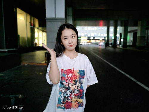 從樣張中我們可以看到,拍攝的畫面中前景較暗,背景中有燈光,而在vivo S7中,經(jīng)過算法加持,將人物面部進行了調(diào)亮處理,讓人物與背景整體比較和諧,作為主體的人物面部清晰,頗有一種隨手拍出夜景大片質(zhì)感。
