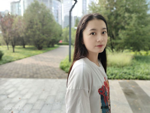 從拍攝的樣張來看,“人像構圖”指導拍攝構圖還是非常專業(yè)的,而且得益于vivo S7的美顏算法,人物拍攝的面部細節(jié)精致,整體畫面看起來頗有一種寫真質(zhì)感。而且我們可以看到人像模式下,人物前景與背景的分離非常清晰,人物邊緣也沒有被模糊。