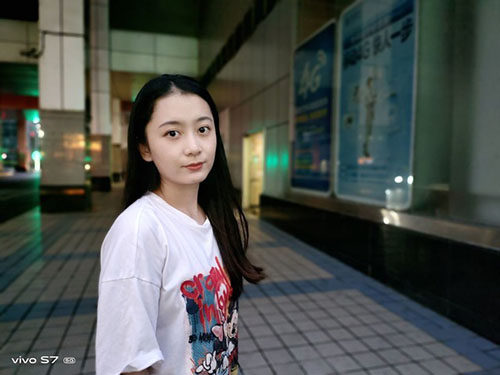比如上圖我們可以看到,vivo S7拍攝下的夜景人像,人物面部清晰明亮,而背部的夜景則是進行了一定程度的調(diào)暗處理,讓人物在夜景中更加突出。