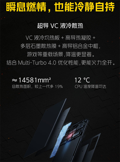 為了讓用戶在玩游戲時(shí)擁有更舒適的手持溫度,iQOO 5系列在散熱上也做足功夫,搭載了VC液冷均熱板、高熱導(dǎo)凝膠、多層石墨散熱膜等多重技術(shù)加碼的全新超導(dǎo)VC液冷散熱系統(tǒng),降溫效果更顯著,讓用戶盡享游戲快感。