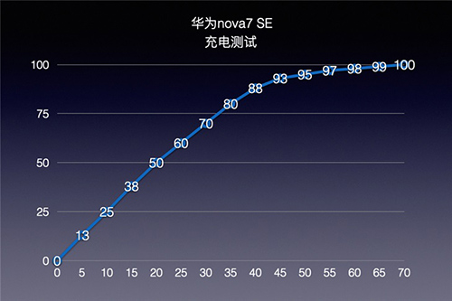 值得一提的是,在較為輕薄的前提下將電池容量做到了4000mAh,而且支持華為40W超級快充,實(shí)測從0%開始充電,半小時(shí)充電70%,一小時(shí)充電98%,全部充滿一共70分鐘,與官方宣稱的30分鐘充電70%的說法吻合。