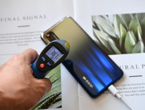 充電過(guò)程中,采用測(cè)溫儀進(jìn)行測(cè)試,溫度并沒(méi)有升高太多,38.7度,手感溫度并沒(méi)有太高,整個(gè)充電過(guò)程中的溫度變化并不會(huì)讓你感覺(jué)到太多的變化。