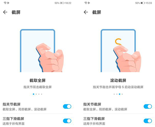 同時還支持滾動截屏、局部截屏、三指下滑截屏。