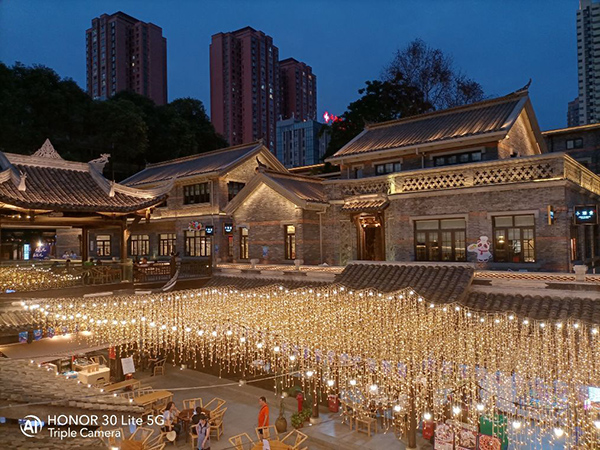 而在傍晚環(huán)境光線比較弱的情況下,榮耀30青春版也可以相對比較好的抑制高光,同時暗部不至于出現(xiàn)過于明顯的噪點和涂抹感,這對于最終成片的觀感是非常重要的,可以看到,樣張中的建筑物輪廓清晰,燈光明亮有層次,但沒有出現(xiàn)過曝或者較為明顯的炫光,對于一款定價2000元以內(nèi)的機(jī)型來說,表現(xiàn)還是值得肯定的!