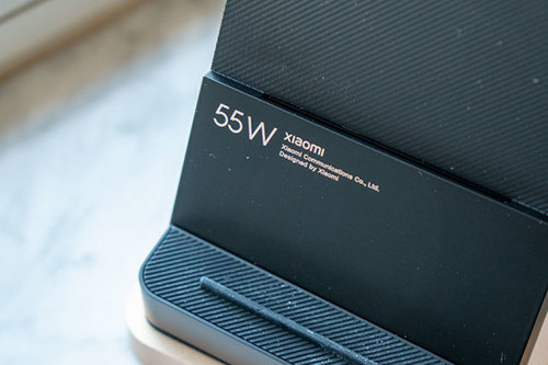 想要使用50W的無線充電,需要配合小米專用的立式風(fēng)冷無線55W充電器,這個充電器采用了之前30W的無線充電器為原型,為了突出其特殊性,整體配色采用了黑金色。
