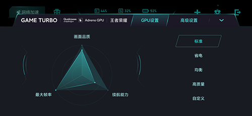 為了實現(xiàn)優(yōu)秀的游戲體驗,小米10至尊紀(jì)念版加入了GameTurbo 4.0,這項功能是專為玩家推出,可以針對不同的游戲,對GPU的性能進(jìn)行調(diào)整,包括標(biāo)準(zhǔn)、省電、均衡、高品質(zhì)、自定義五種選項。