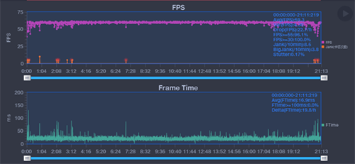 經(jīng)過(guò)20分鐘的測(cè)試,游戲幀率表現(xiàn)如圖,全程保持60FPS,但新加的超高清畫(huà)質(zhì)貼圖材質(zhì)等明顯負(fù)載比以往提升了不少,中間部分場(chǎng)景有比較明顯的波動(dòng),實(shí)際過(guò)程中≥55FPS的時(shí)間占到了96.1%,全程最低幀也保持在30FPS以上,體驗(yàn)流暢。
