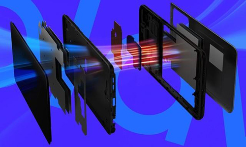 具體來看,榮耀Play4配備了由屏幕背面金屬鐵框+單層石墨+前殼正面大片三層石墨+高導(dǎo)熱鋁合金QN13+TIM+不銹鋼屏蔽罩+TIM+12層高導(dǎo)熱系數(shù)PCB板+VC液冷均熱板+后殼大片三層石墨+下Box石墨組成的12層散熱結(jié)構(gòu)。