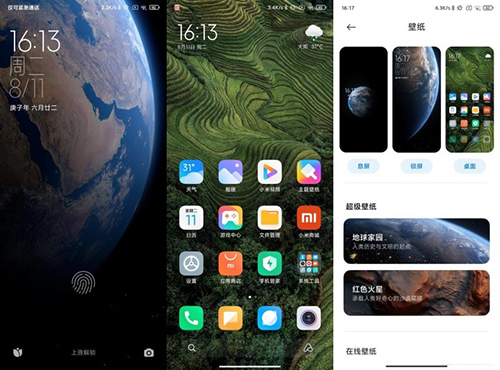 首先最大的改變是在MIUI 12中加入了超級壁紙這一功能,用戶可以使用超級壁紙讓用戶界面變得更順滑、更有靈動感,比如在壁紙中可以設(shè)置火星和地球為壁紙界面,在不同的情況下火星和地球就會呈現(xiàn)不同的狀態(tài),在鎖屏界面會看到它們的輪廓,在桌面下就會看到一個具體的地點,并且還有單獨的地方可以選擇,在切換頁面時背景就會跟著一起動起來,讓人非常喜歡。