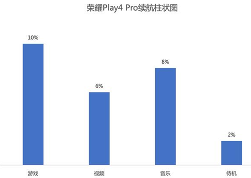 而這也是恰好對應的游戲、音樂、視頻、日常待機這四個場景,于是我就想到了在針對于這四個場景進行相應的續(xù)航測試,也為大家解惑榮耀Play4 Pro在4200mAh電池的前提下,經(jīng)過高強度的使用之后到底能夠撐多久。這次我對于這四個場景我都是分別使用1小時的前提下來看這款手機的續(xù)航時間,可以看到在這四個應用場景下游戲續(xù)航消耗相對較高達到了10%,而在視頻和音樂上分別是6%,音樂的消耗在8%,待機的話消耗了2%的電量。