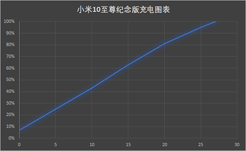 小米10至尊紀念版是全球首批實現量產120瓦有線充電的智能手機,官方數據顯示使用該快充可實現5分鐘有線充電41%,23分鐘充至100%。經過我們實際的使用測試,模擬日常使用的情況下,不關閉更新和無線等功能,半小時就能將電量充滿。
