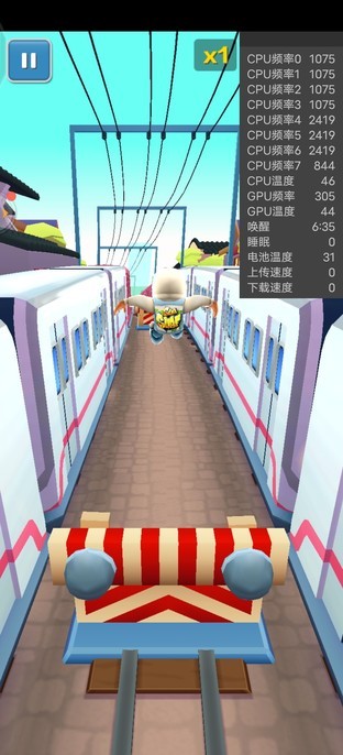 我們用監(jiān)視器觀察運行地鐵跑酷過程中8顆核心分工如何,發(fā)現(xiàn)4顆小核心及4顆大顆心都可以穩(wěn)定的運行。簡而言之對CPU資源占用率相比其它中低端處理器更高,但是不至于過分的狀態(tài)。