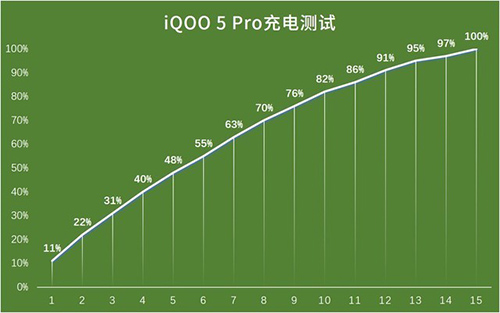 2、iQOO 5 Pro電池較小理應(yīng)總充電時間更短,但功率數(shù)據(jù)證明,除了電池容量的影響外,得益于更加持久的高功率輸出,iQOO 5 Pro單位時間充電更快,在相同時間內(nèi)充進去的電量也更多。