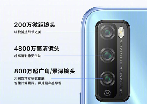 在這個相機(jī)方面,華為暢享20 Pro后置采用了4800萬像素主攝+800萬像素超廣角/景深+200萬像素微距鏡頭的三攝設(shè)計(jì),支持夜拍人像、高感光夜拍、超級夜景等玩法,可以帶來多樣的拍照體驗(yàn)。