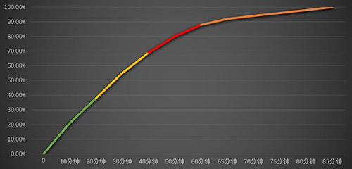 在我們的實(shí)測(cè)當(dāng)中,將華為暢享20 Pro的電量從0%充至88%僅需要60分鐘時(shí)間,之后手機(jī)充電開始放緩,最終85分鐘左右充滿100%。