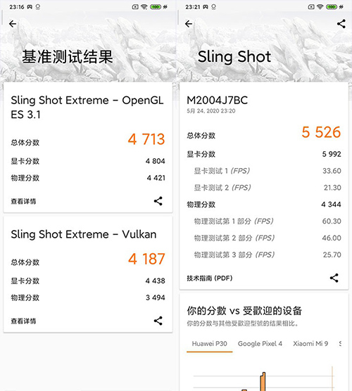 此外,為了測試Mali-G57 MC5 GPU的性能,我們使用3D Mark的Sling Shot Extreme和Sling Shot為Redmi 10X Pro跑分,Redmi 10X Pro在這兩項分別獲得了4713分和5526分。這樣的跑分成績已經(jīng)與驍龍865旗艦機差距不大了,與同價位機型相比優(yōu)勢非常明顯。