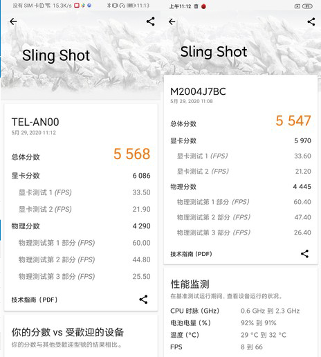 為了對(duì)這兩款產(chǎn)品的GPU進(jìn)行進(jìn)一步挖掘,我們用3DMark來(lái)一次跑分,在Sling Shot跑分中,榮耀X10取得了5568分的成績(jī),Redmi 10X Pro取得了5547分的成績(jī),在這方面二者成績(jī)相差并不大。