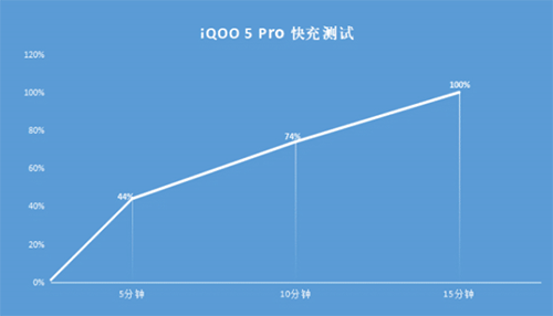從上圖可以看出,在將iQOO 5 Pro電量完全用盡之后充電,用時5分鐘即可充電44%,10分鐘可充電74%,15分鐘后電量已經(jīng)來到了100%。其充電效率只有三個時間段,充電速度簡直令人嘆為觀止。而極致的充電速度無疑將大大提升我們的用機體驗,在日常生活中,即使前一天晚上忘記充電,早上起床后僅需一個洗漱或者早餐的時間,手機就可滿血復活?;蛘咴诰o張刺激的游戲中,電量突然告急,這個時候只需片刻休息調(diào)整一下狀態(tài),就可以帶上“滿血”的iQOO 5 Pro重新加入戰(zhàn)場。