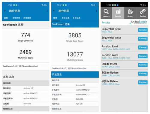 首先使用專業(yè)的安兔兔與GeekBench跑分軟件對(duì)realme 真我X7 Pro搭載的聯(lián)發(fā)科天璣1000+的理論性能進(jìn)行評(píng)估。
