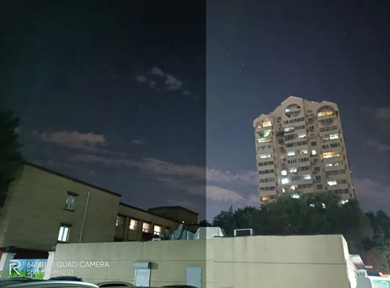 realme 真我X7 Pro自動(dòng)模式(左)與夜景模式(右)效果對(duì)比