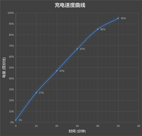 50分鐘的時(shí)候電池已經(jīng)充入了95%的電量,后面的速度會(huì)放緩,進(jìn)入涓流充電階段,這樣做的目的是為了保護(hù)電池,所有手機(jī)廠商都會(huì)這么做。