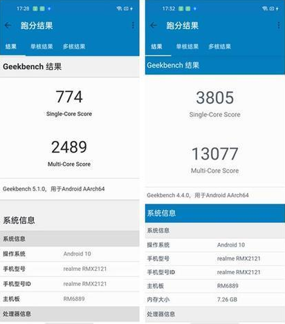 而在GeekBench 5中單核有774分,多核有2489分,從對比結(jié)果來看已經(jīng)是超越高通驍龍855+的性能水平。