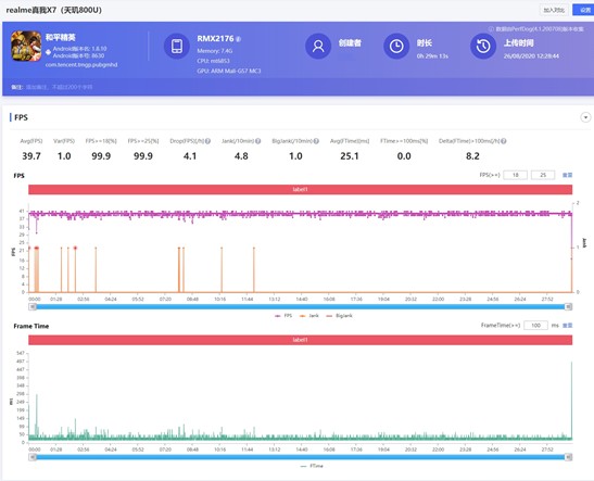 當(dāng)然,跑分成績也只是作為參考,實際應(yīng)用表現(xiàn)還需要看游戲?qū)崪y。最熱門的兩款手游《王者榮耀》和《和平精英》實測這就奉上!兩款游戲同時開啟高幀率和高畫質(zhì)模式,通過 Perfdog 來記錄幀率數(shù)據(jù),讓我們看看真我X7的實際表現(xiàn)究竟如何。