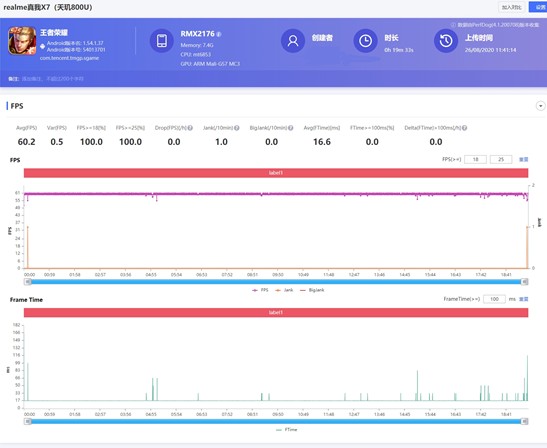 從測試結(jié)果來看,搭載天璣800U的真我X7在高畫質(zhì)之下可以輕松的滿幀運行《王者榮耀》,并且平均幀率達(dá)到了60幀以上,可謂是相當(dāng)?shù)牧鲿场?