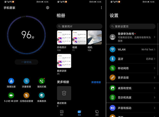 EMUI 10.1帶來(lái)了全局深色模式,深色模式不是簡(jiǎn)單的顏色變化,而是從背景填充到文字圖標(biāo)進(jìn)行了對(duì)比度和色階的全面調(diào)試,帶來(lái)更舒適的閱讀體驗(yàn)和更省電的效果。